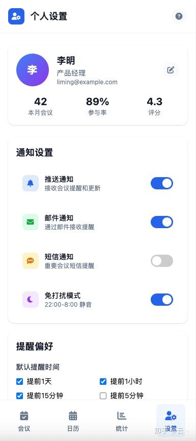 我需要开发一个会议提醒管理 APP,请生成完整的高保真 HTML 原型界面。