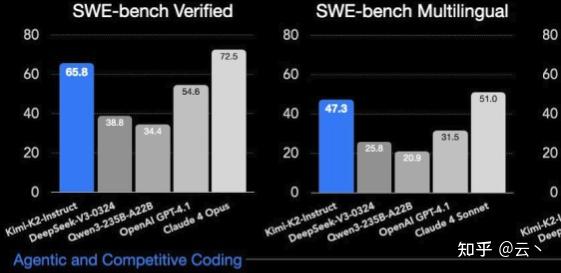 Kimi K2 在编程领域的表现尤为出色。在 LiveCodeBench 编程基准测试中,Kimi K2 的准确率达到了 53.7%,超越了 GPT-4.1(44.7%)。