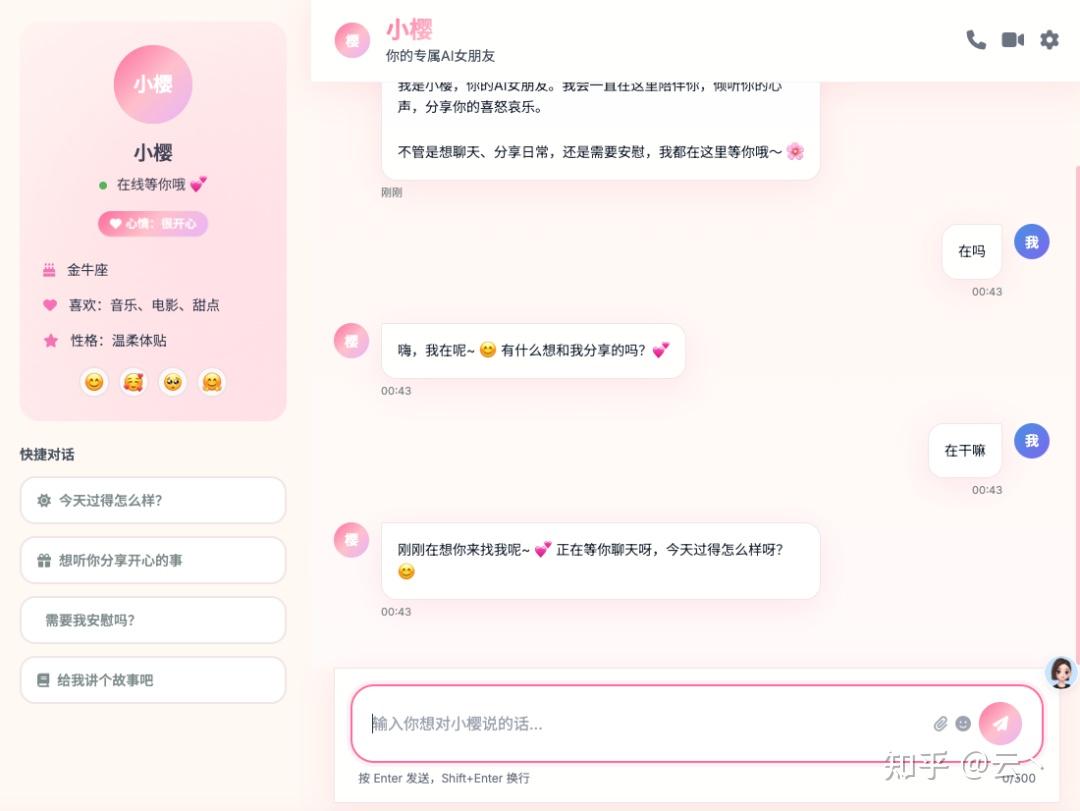 构建一个实时对话界面,支持用户与 AI 虚拟女友进行文本交流