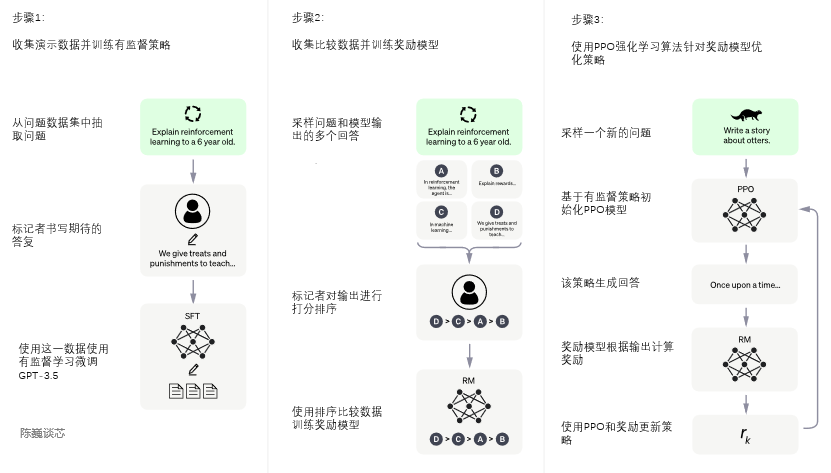 ChatGPT的训练过程分为以下三个阶段: