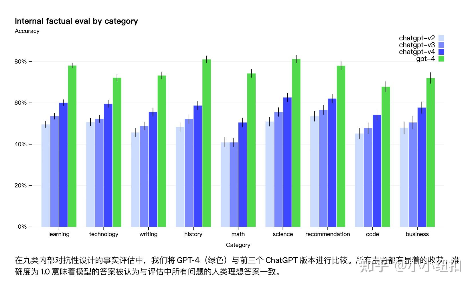 虽然仍然是一个现实问题,但 GPT-4 相对于以前的模型(其本身在每次迭代中都在改进)显着减少了幻觉。在OpenAI创建了 GPT-4的内部对抗性事实评估中,GPT-4 的得分比最新的 GPT-3.5 高 40%: