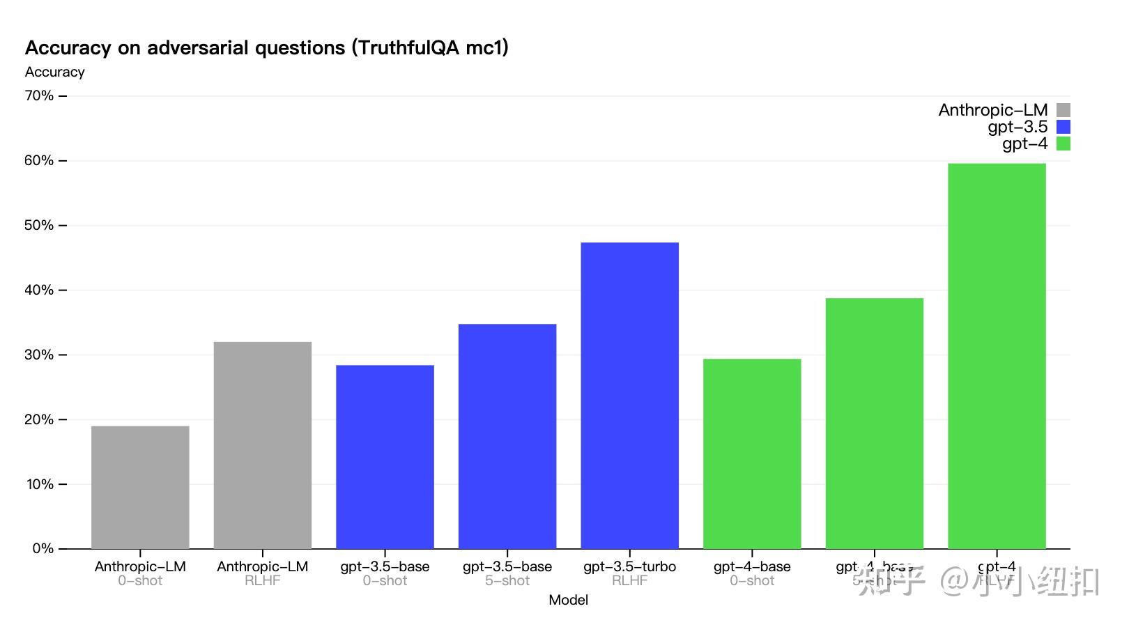OpenAI创建了 GPT-4在 TruthfulQA 等外部基准方面取得了进展,该基准测试模型将事实与对抗性选择的一组不正确陈述分开的能力。这些问题与事实上不正确的答案相结合,但在统计上很有吸引力。