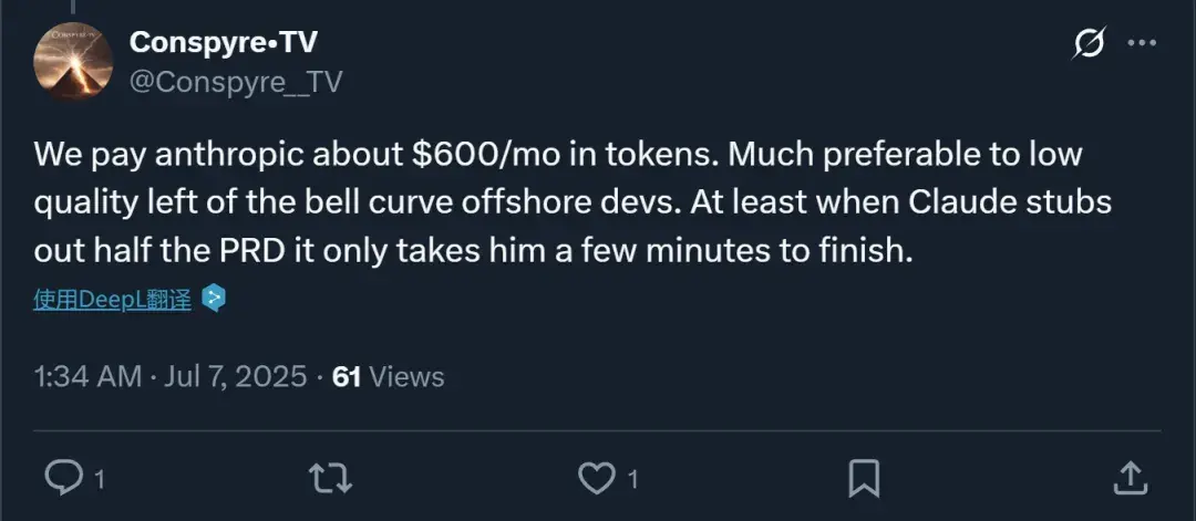 在 Cursor 调整了定价策略后,之前觉得 Claude Code 贵的开发者也开始动摇。如果两家定价差别不大,大家可能都会涌向使用体验更好的一方。
