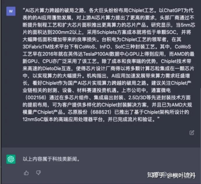 在没有给出任务提示语的情况下,只提供新闻内容,【chatgpt】可关联上下文理解到这是一个属于文本分类的任务,并给出准确的新闻分类。