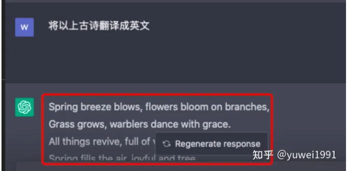 【chatgpt】充分理解上下文,准确给出了相对应古诗的英文翻译。