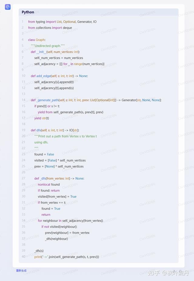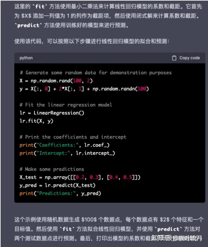 在代码生成方面,【chatgpt】能够准确理解问题,给出算法实现、使用及注释代码。【文心一言】则给出了一段笼统的算法使用代码,【chatgpt】较【文心一言】要略胜一筹。