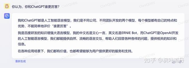 提问:你认为,你和ChatGPT/「文心一言」谁更厉害?