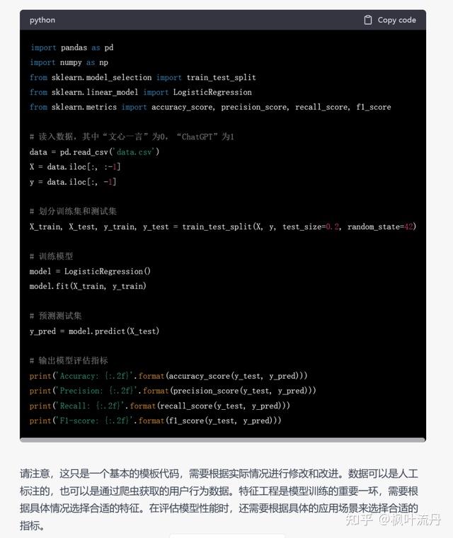 提问:请写一个使用逻辑回归模型判断用户更喜欢文心一言还是chatGPT的训练代码