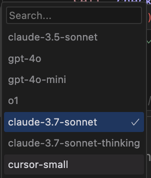 目前claude 3.7 sonnet也在Cursor上架了。不过,在Cursor上看,这两个模型是分开的