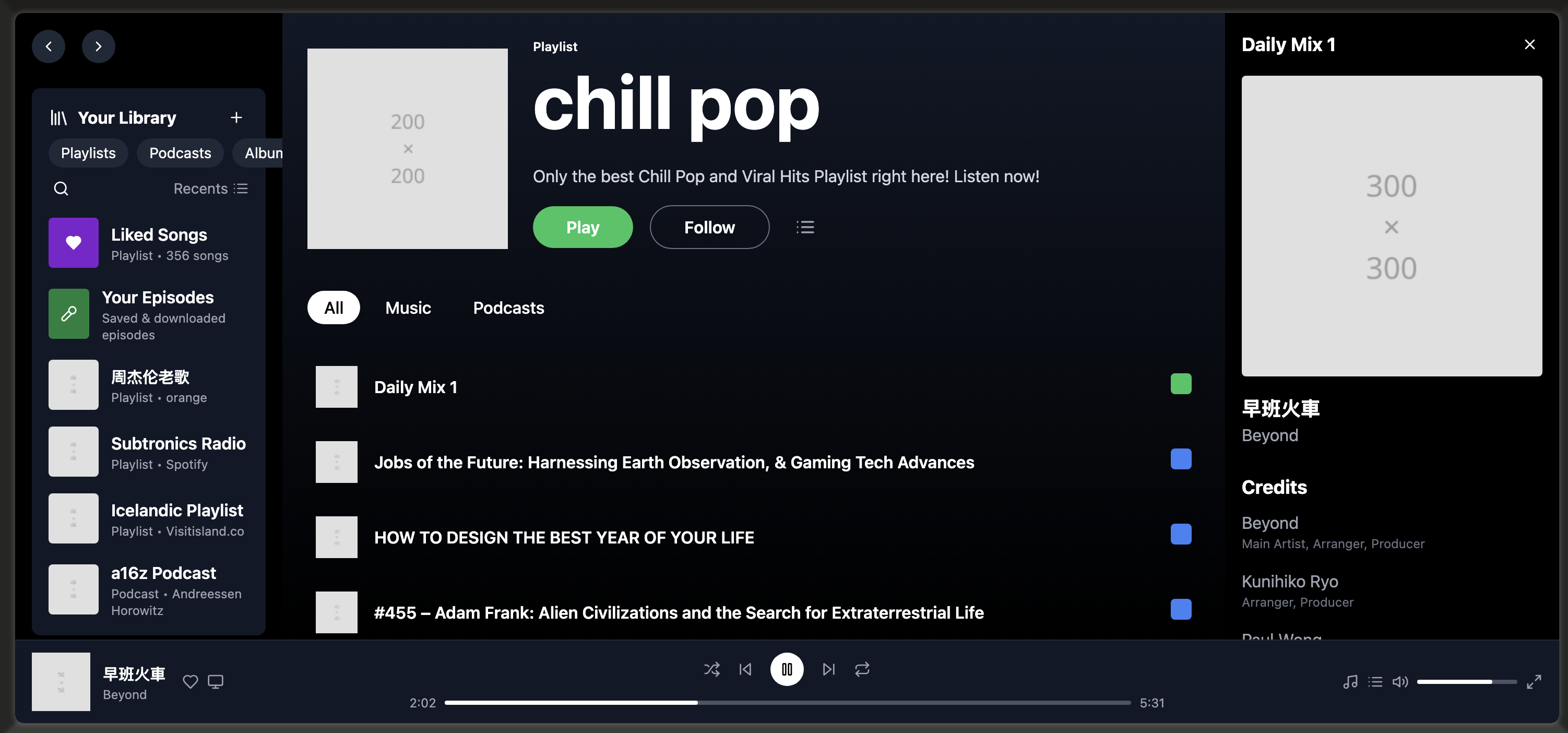 而用claude 3.7 sonnet再试,基本上克隆效果更好了,左边的菜单栏,中间的playlist,右边的详情页等等,都复制过来了。当然,专辑封面由于没有具体图片的地址,没法复制过来。