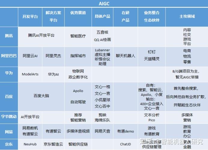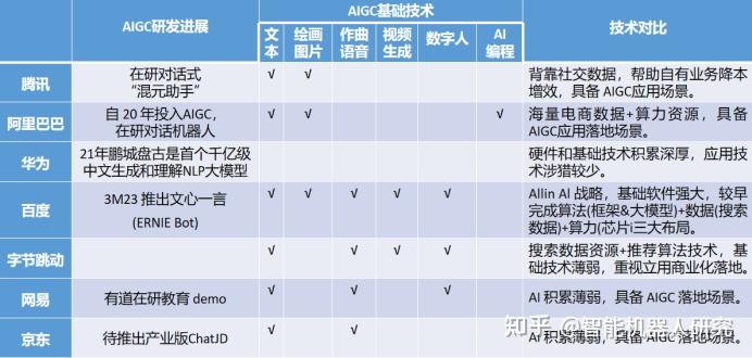 国内互联网大厂AIGC技术研发对比
