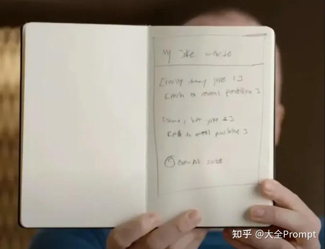 可以笔记本上随便画一个自己网站的草图,然后 GPT 就给你生成了对应的网站: