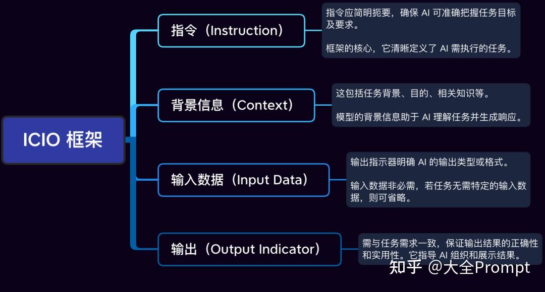其核心从指令、背景、输入数据和输出引导这四个维度去思考和明确任务。
