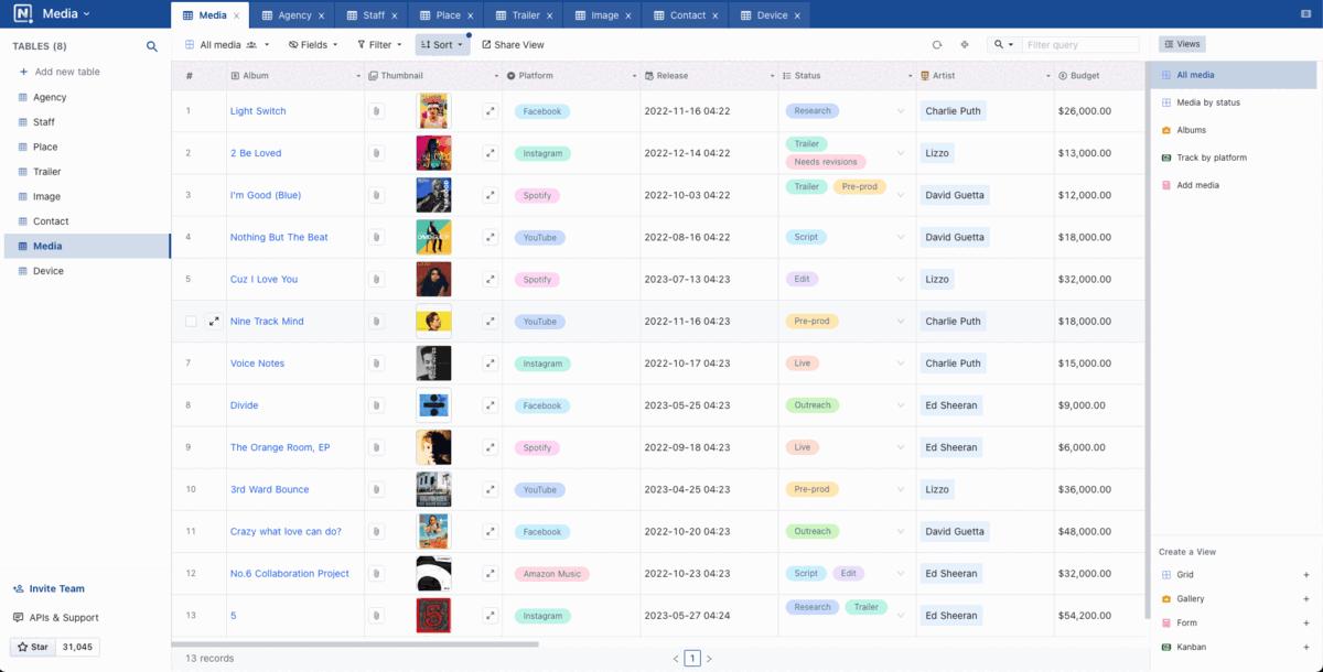 随时可视化数据,支持团队在数据上工作,扩作为数据库混合体Airtable产品的开源替代品。