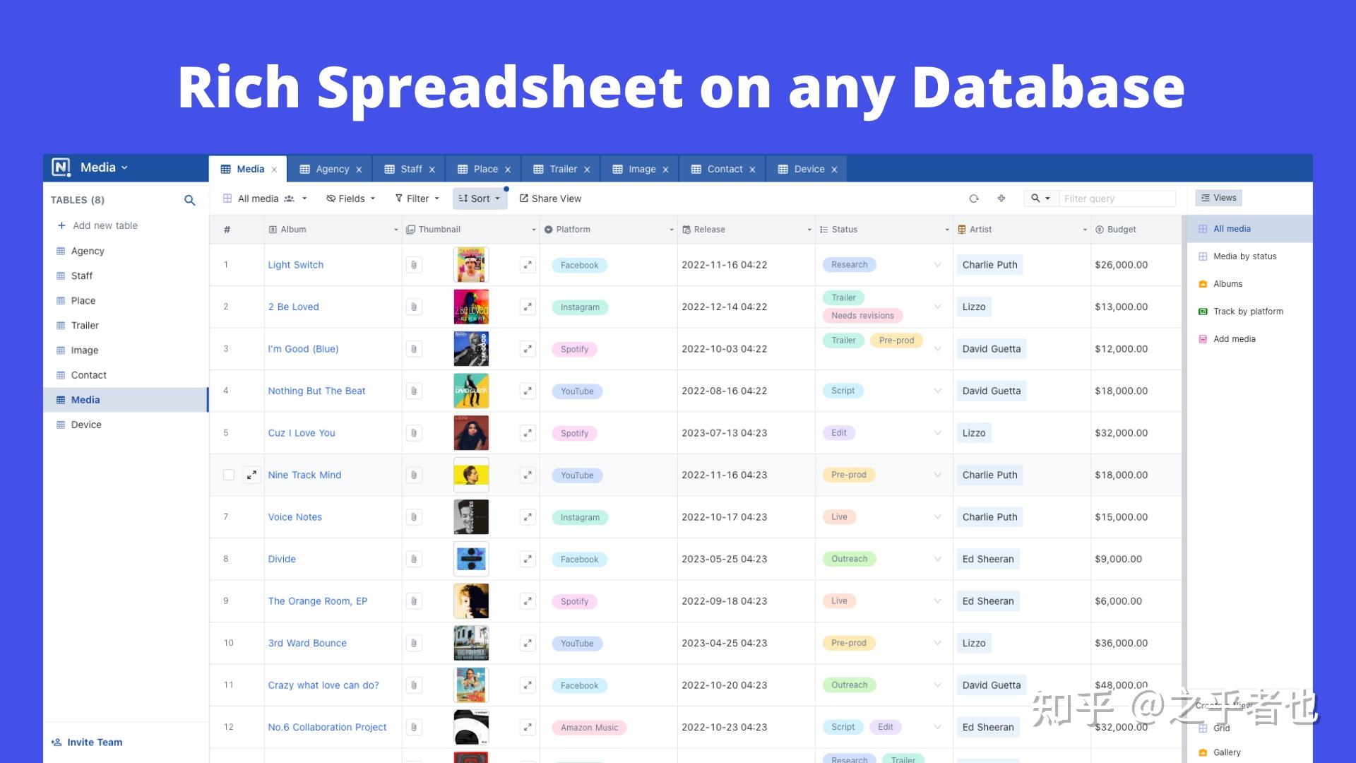 它可以将任何MySQL,PostgreSQL,SQL Server,SQLite和MariaDB数据库转换为智能电子表格。
