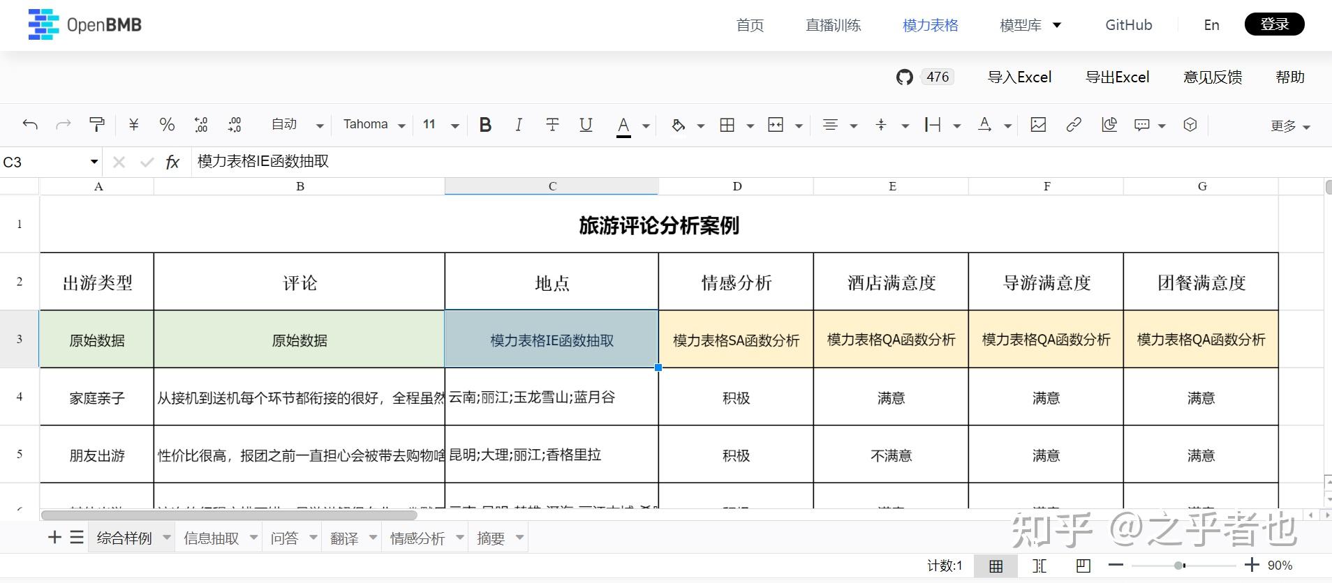 它保留了表格工具原有的全部功能,还进行了一定的整合和优化,提供更多创新功能,如信息抽取、问答、翻译、情感分析和摘要等。