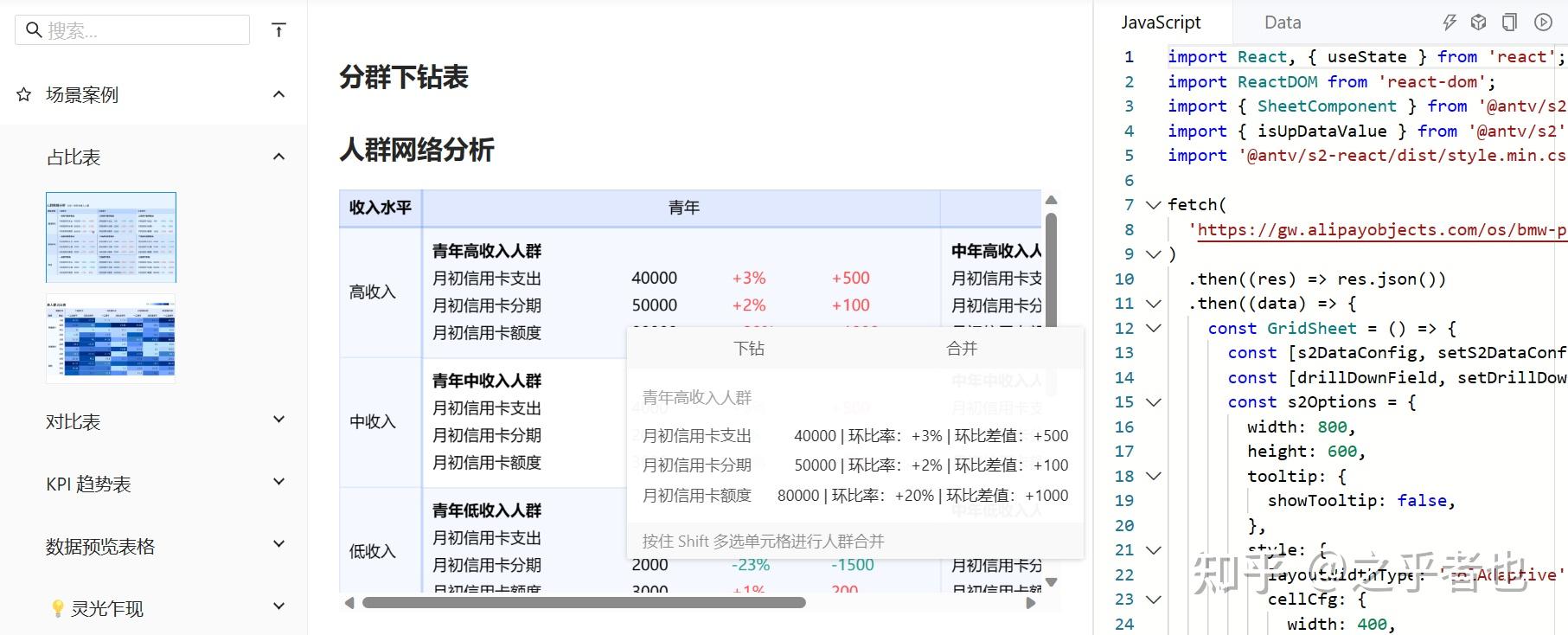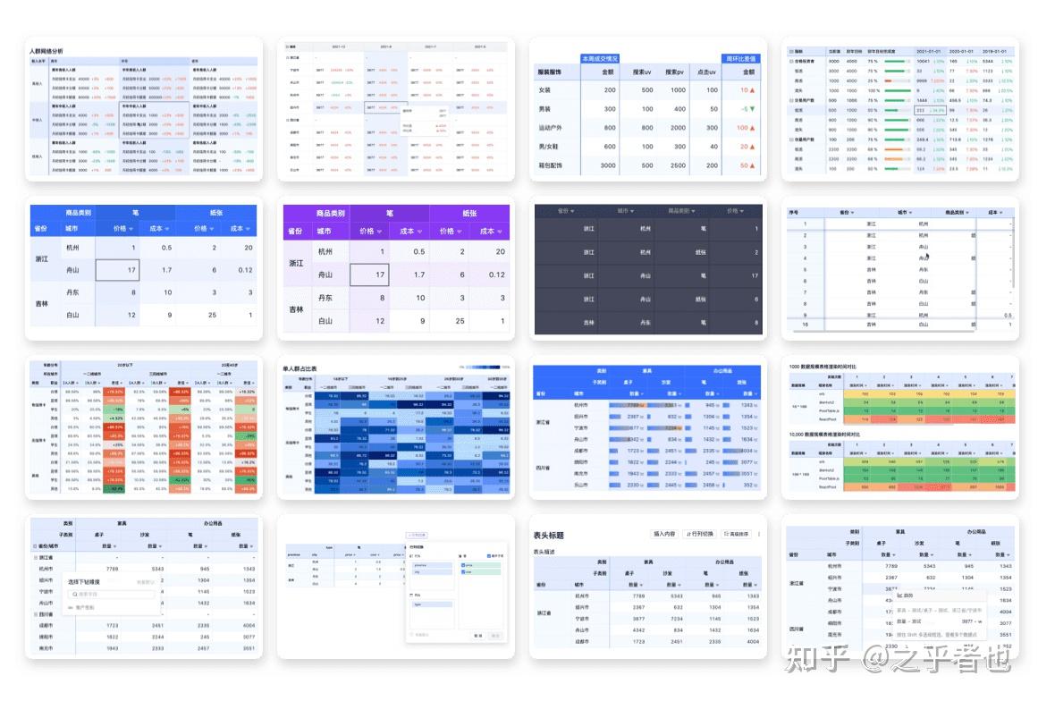 一个用于表格分析的实用可视化库,高性能多维交叉分析的表格工具,提供KPI趋势表、占比表、对比表等多种表格样式。