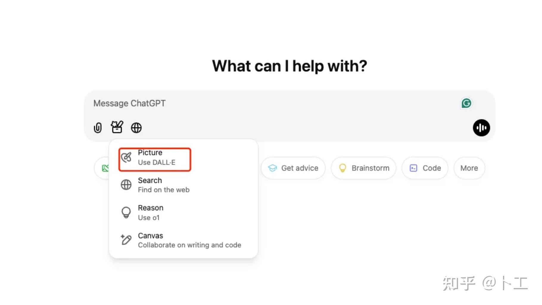 打开ChatGPT后,在下方工具栏中先选择Picture,告诉它你的指令是画图。