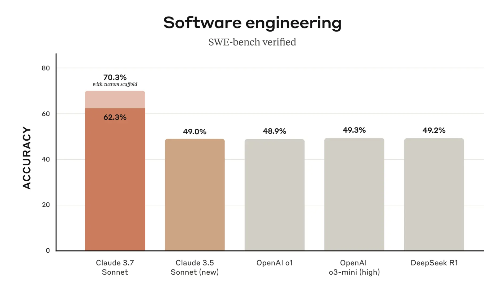 | SWE-bench Verified | 70.3%(高计算),63.7%(无高计算) | 489任务,11个任务不可解,简单工具支持 |