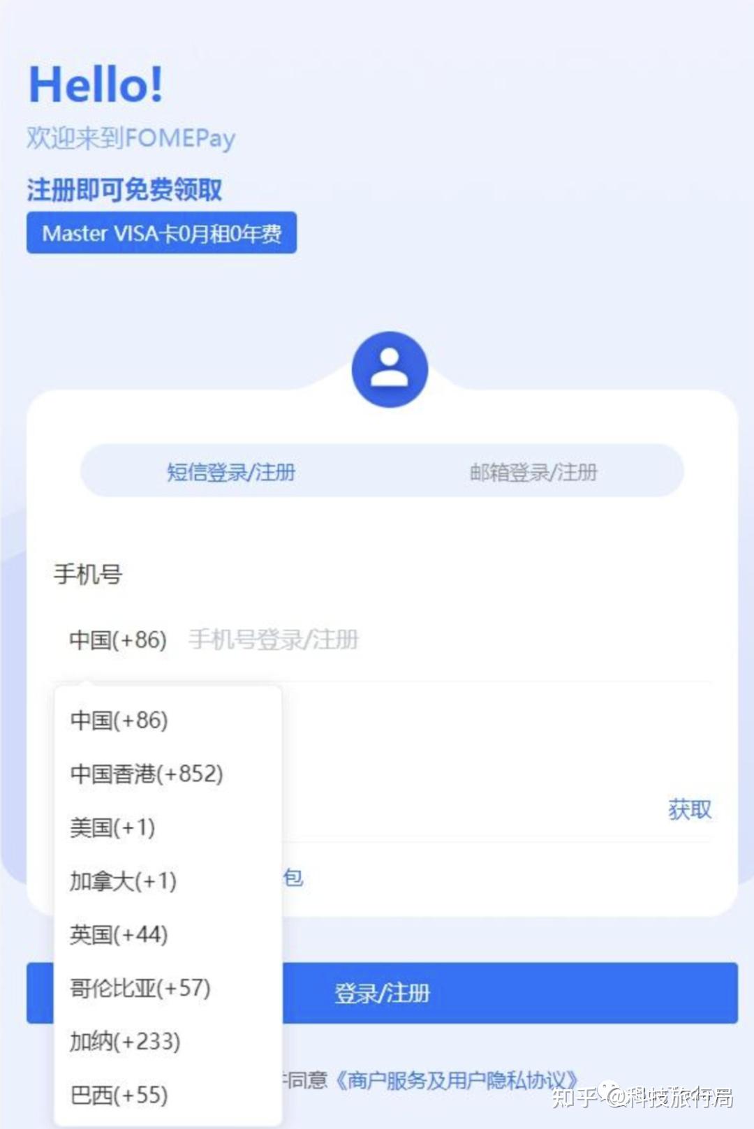 首先进入主页,通过手机号码或者邮箱(我注册时候很久都没有收到验证码,推荐邮箱)注册一个账号(注册地址:https://gpt.fomepay.com/#/pages/login/index?d=R196E3)