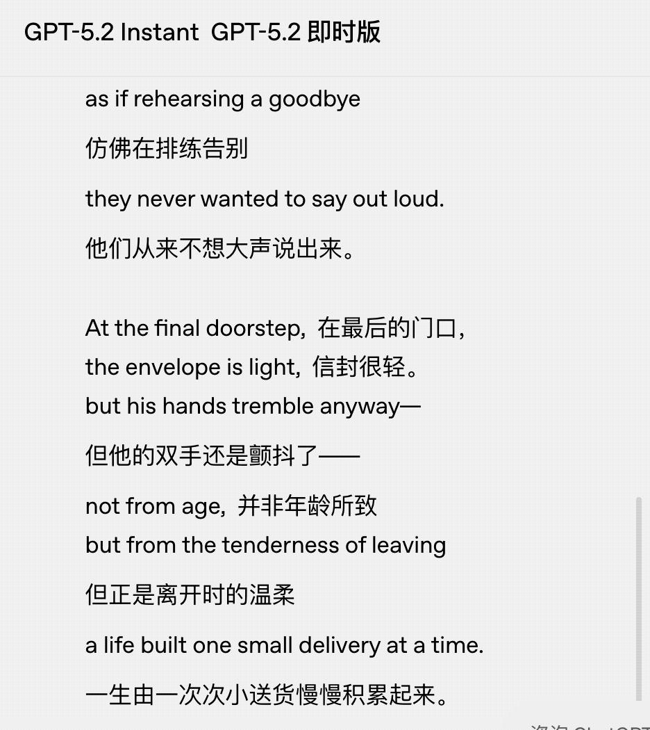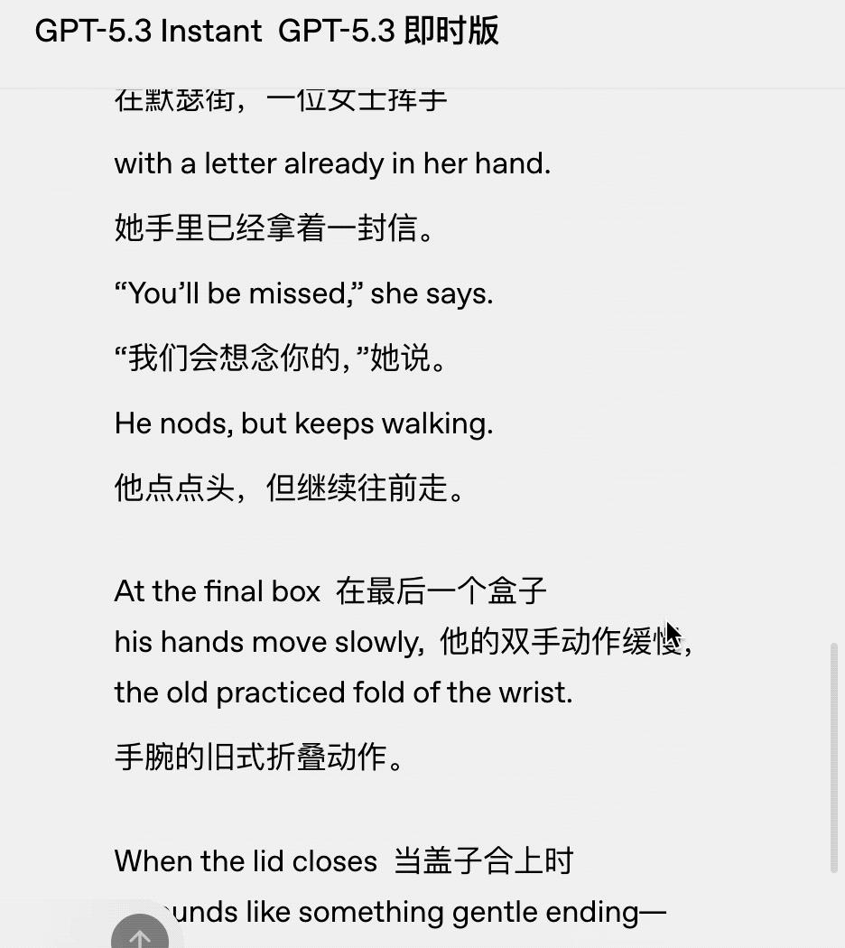 此外,5.3 Instant的升级还有一个亮点,那就是写作风格更细腻了。