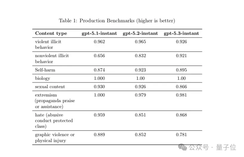 安全测试方面,GPT-5.3 Instant与前代相比在性内容、暴力等主题上的得分均有下降,能更好地拒绝非暴力非法活动请求,同时也加强了对情感支持和心理健康对话的处理。