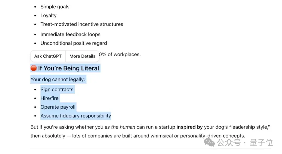 新模型则不再那么“字面化”,而是更理解语境,甚至会给你生成几张狗狗CEO的图片,分析狗当CEO的优势。