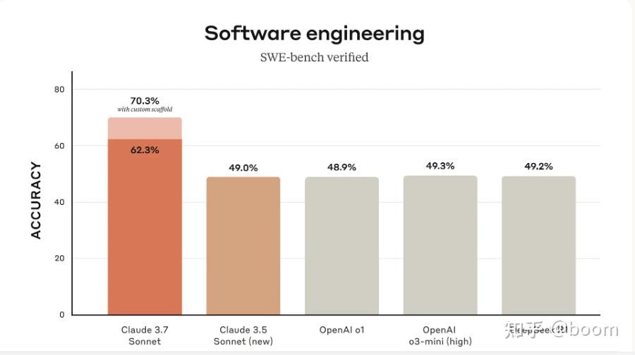 Sonnet软件工程得分情况如下 超过目前主流模型,话说为啥没有Grok3(瞧不上20万张的GPU?)