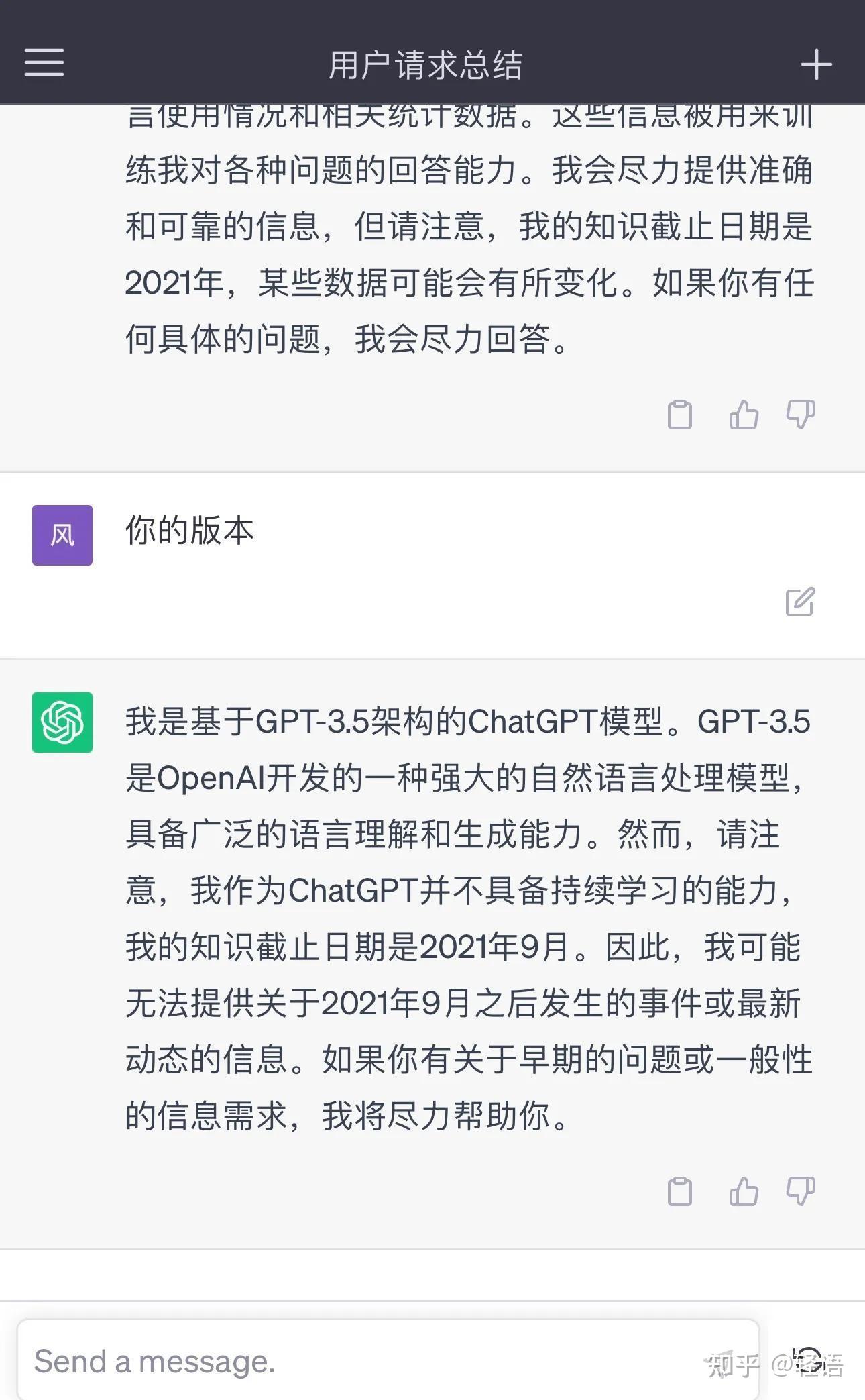 GPT-3.5架构的ChatGPT模型知识截止日期2021年9月