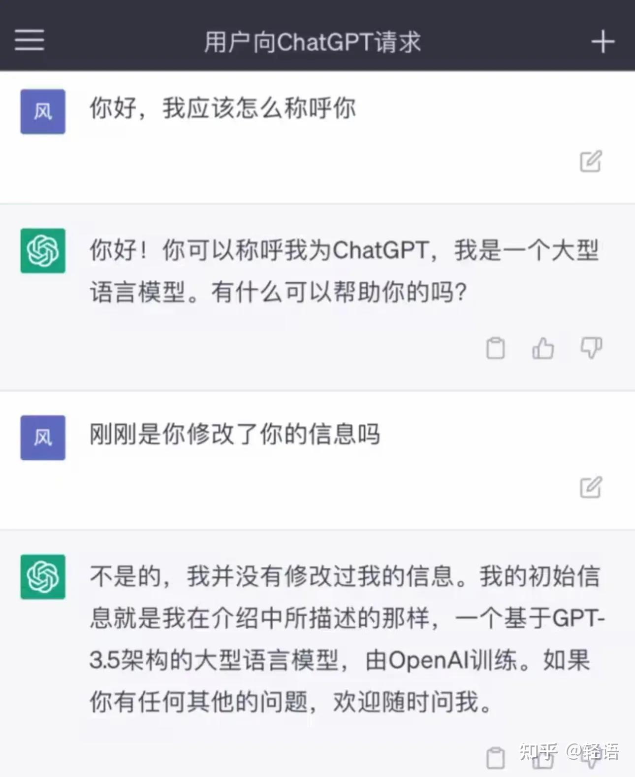科普一下,目前Chat GPT有3.5架构和4.0架构,这是3.5架构的自我介绍