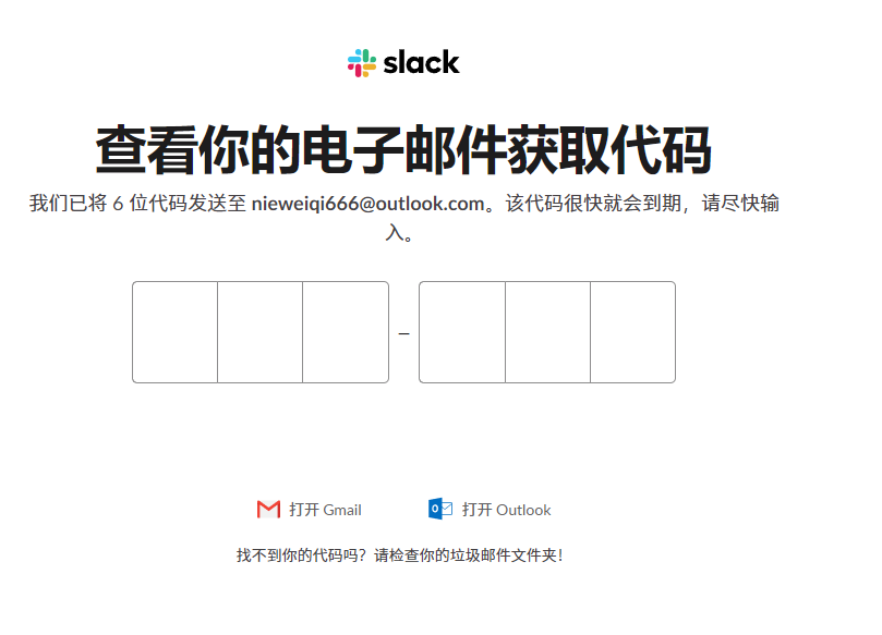 输入邮箱后,Slack会给邮箱发一串代码,接受后复制粘贴即可