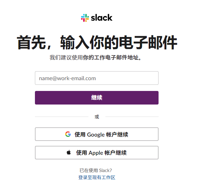 然后,打开Slack的注册链接:https://slack.com/intl/zh-cn/get-started#/createnew