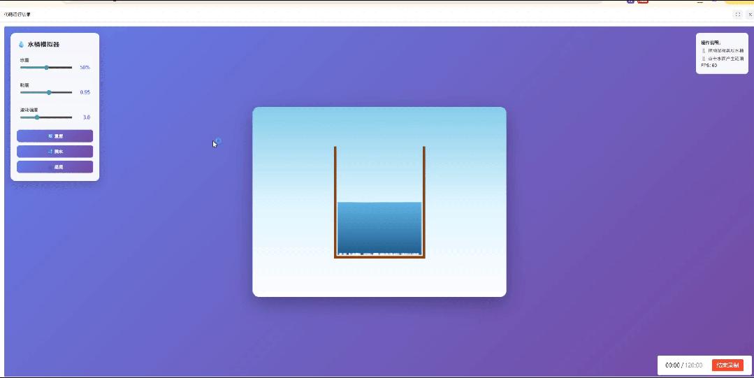 Claude 4 的编程实力确实惊人,可以说是遥遥领先!在第一次尝试中,它就生成了一个完整的程序,虽然最初水的动态效果稍显不足,但在我给出优化建议后,Claude 很快调整出了理想的结果。