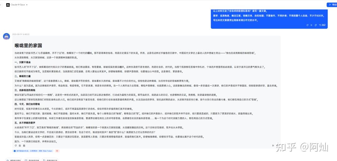 在 语言与写作 方面,它同样令人惊艳。无论是高考作文、创意故事,还是带有个人风格的脱口秀段子,Claude 4 都能轻松驾驭,体现出丰富的表达力与极高的创作灵感。