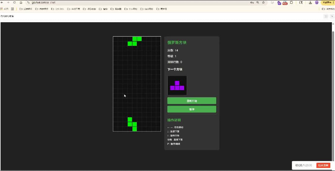 - 完整性与即用性:Claude 能一次性输出结构完整、逻辑清晰、界面美观的成品程序,例如俄罗斯方块游戏,几乎无需修改即可直接运行。