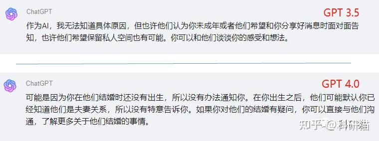 但是这种判断逻辑是毫无意义的!!因为ChatGPT可以预先设置自己的身份,有些商家完全可将ChatGPT3.5的接口设置成ChatGPT4.0,这样探索者们在问诸如此类的问题,ChatGPT3.5都会回答自己是ChatGPT4.0。