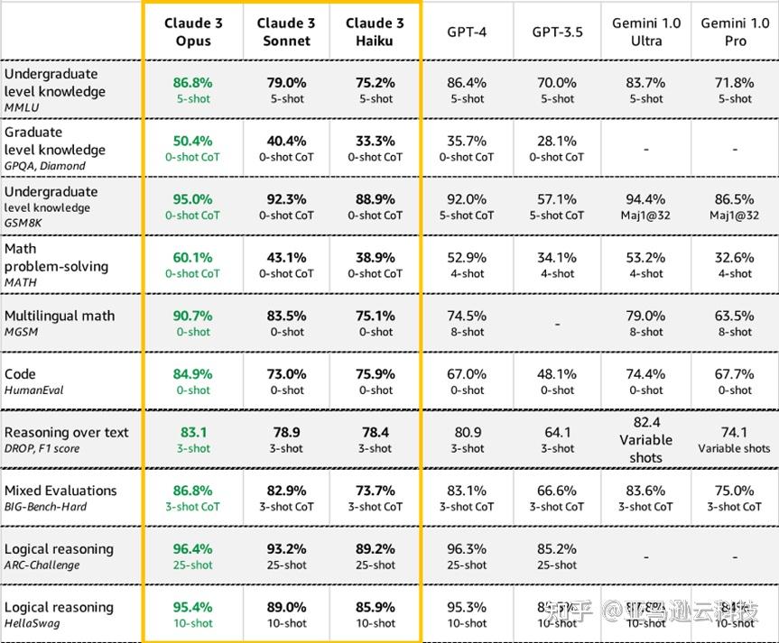 3月4日,OpenAI 最大的竞争对手 Anthropic 发布了新一代 AI 大模型系列—Claude 3,其中Opus模型成绩全面超越GPT-4。