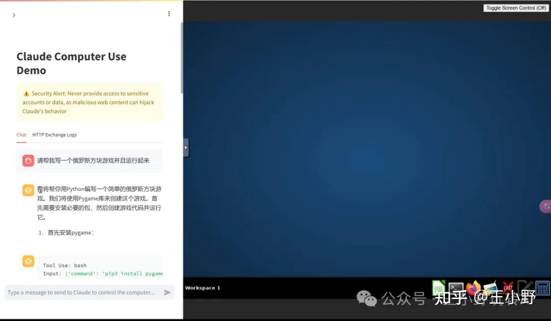 讯享网-e ANTHROPIC_API_KEY=$ANTHROPIC_API_KEY \ -v $HOME/.anthropic:/home/computeruse/.anthropic \ -p 5900:5900 \ -p 8501:8501 \ -p 6080:6080 \ -p 8080:8080 \ -it ghcr.io/anthropics/anthropic-quickstarts:computer-use-demo-latest</code></pre></div><p class="ztext-empty-paragraph"><br/></p><p data-pid="Z5Ty_8Zy">上面代码适用于Mac,win需要简单改动下格式,直接让Claude改写即可,包括遇到的任何报错都可以询问Claude解决。</p>
