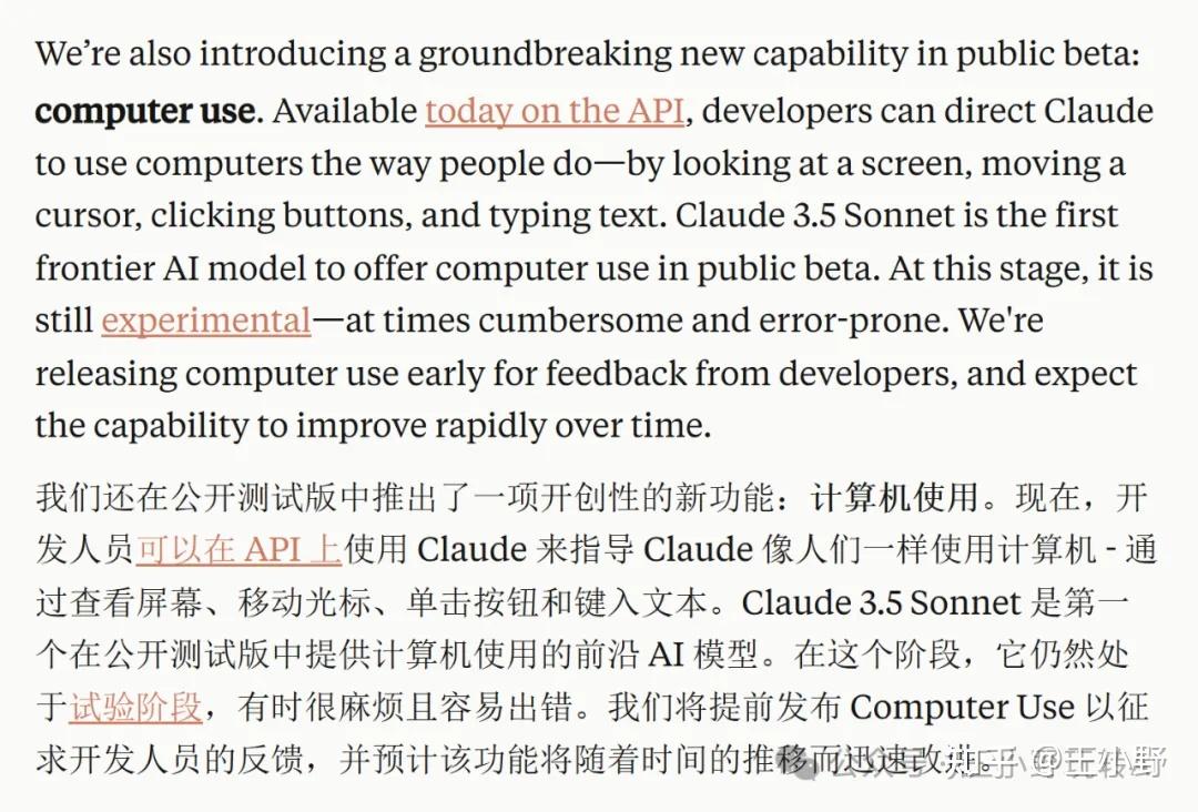 “Computer Use”功能的推出,让人们看到了AI从“简单问题答复”向“更复杂交互操作”迈进的希望。将人立马带入“人机交互方式即将巨变,AI即将全面融入人类工作生活,大幅提高生产效率,一个宏伟的商业帝国时代即将开始”的氛围。