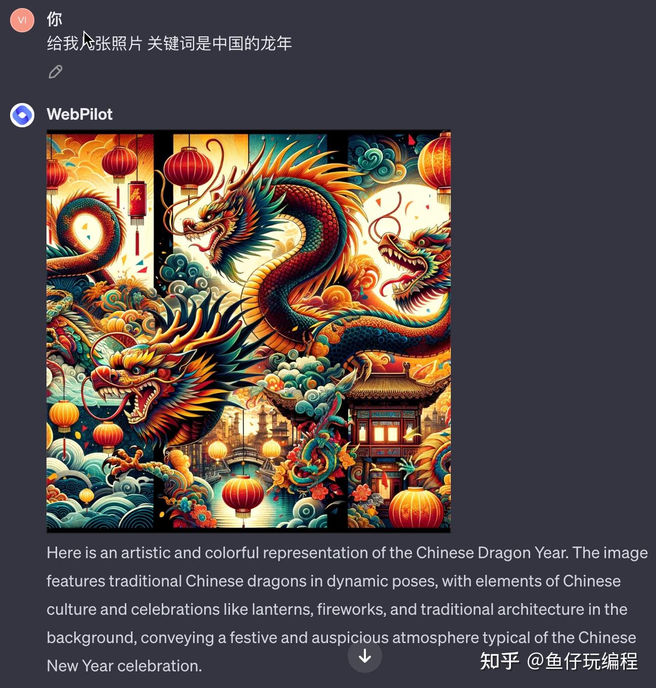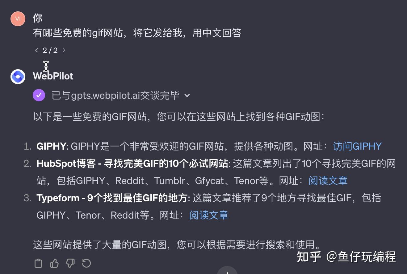 WebPilot 插件是一种高级的 AI 工具,专为 ChatGPT 用户设计,用于增强其在线浏览和内容生成能力。话不多说,让我们直接看效果。可以看到,就是一个加强版的谷歌,还具有文生图的能力,但是你可以以对话的形式和它聊天,并对返回结果进行要求,需要注意的是,默认返回的是英文,如果需要中文,可以在询问的时候加一个限定词。