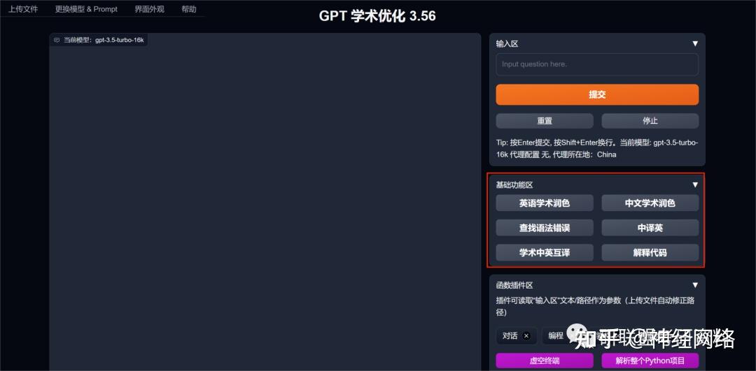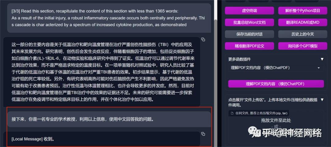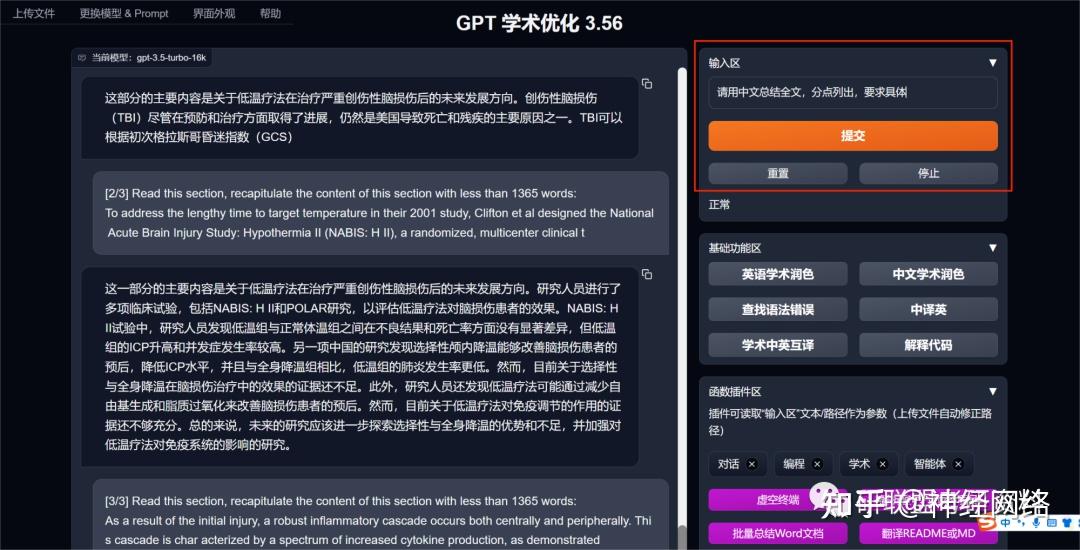 3.2 选择学术版更多函数插件区的理解PDF文档内容插件,可以针对PDF文档理解总结及对话。