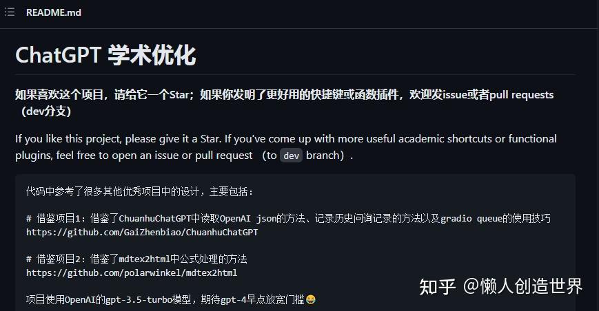 GitHub - binary-husky/chatgpt_academic: 科研工作专用ChatGPT拓展,特别优化学术Paper润色体验,支持自定义快捷按钮,支持markdown表格显示,Tex公式双显示,代码显示功能完善,新增本地Python工程剖析功能/自我剖析功能