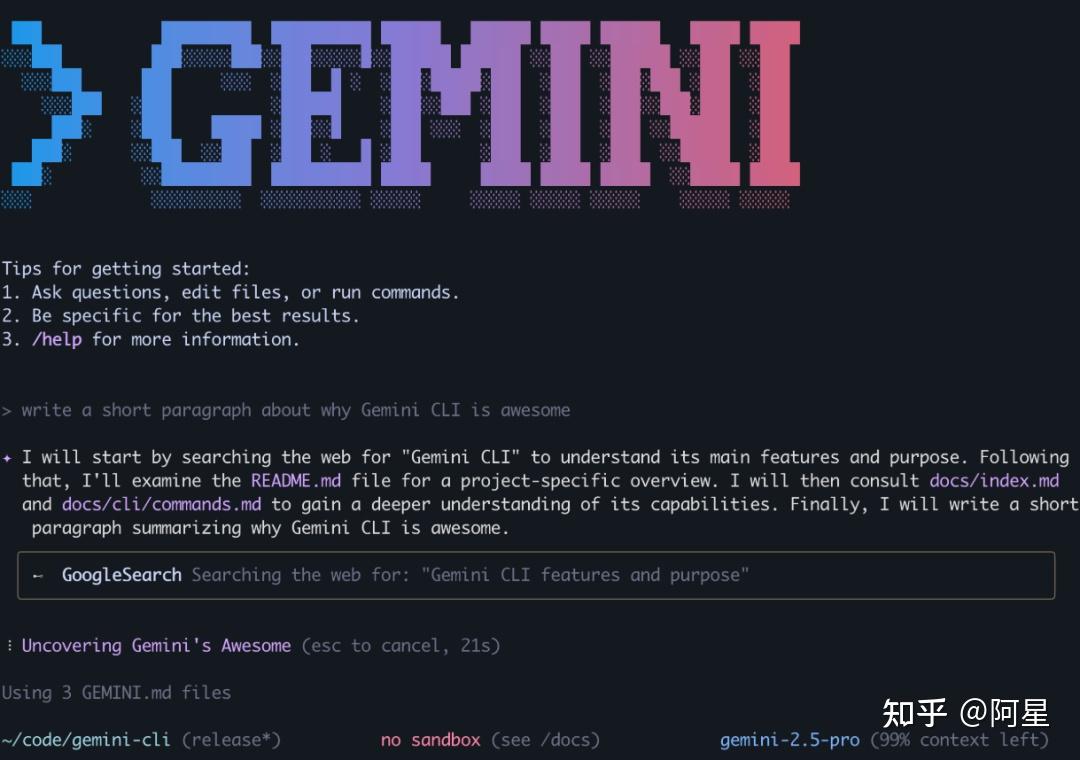还没试过的朋友?强烈建议你立即体验一下 Gemini-CLI! 免费、开源、功能强大,安装只需几步。感受一下开源 AI 助手的魅力,探索它如何改变你与计算机交互的方式。毕竟,免费又好用的智能工具,不用就太可惜了!它的发展,正需要你我这样的使用者共同参与和见证。
