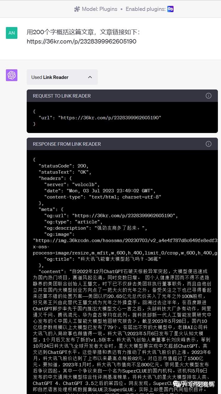 嗯,看得出来,Link Reader接收了 URL ,读取了虎嗅的网页,放在json中,提交给了ChatGPT,ChatGPT对内容做了概述。