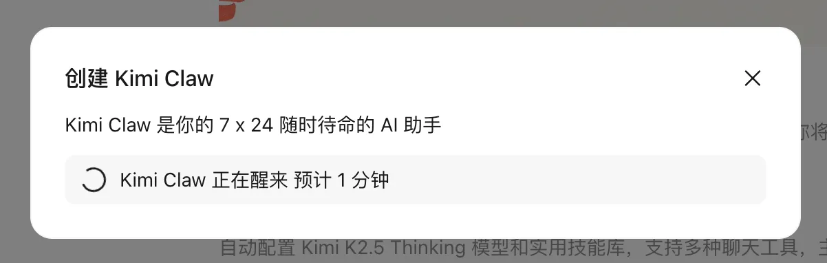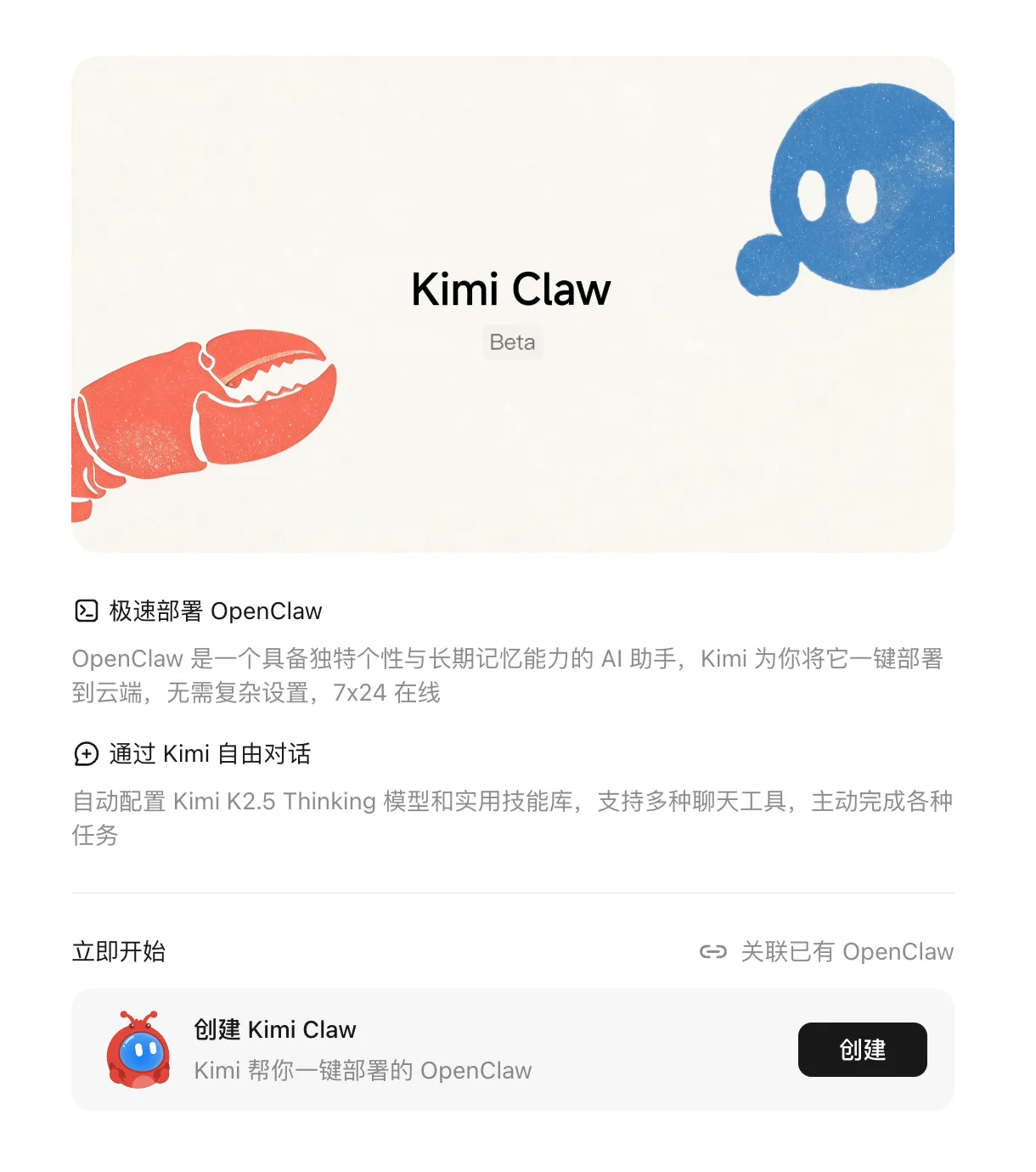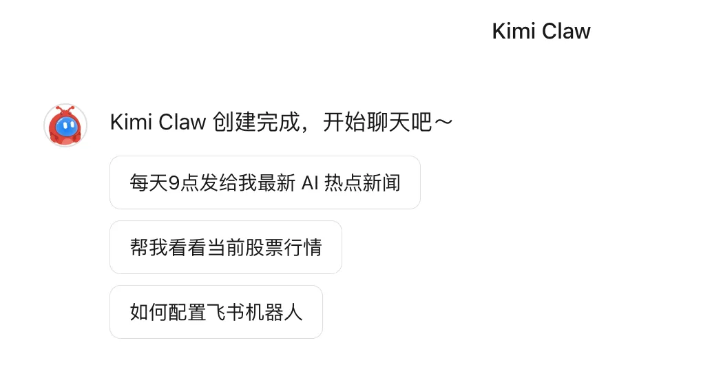 叮,茶还没喝几口,Kimi Claw 就已经建好了。