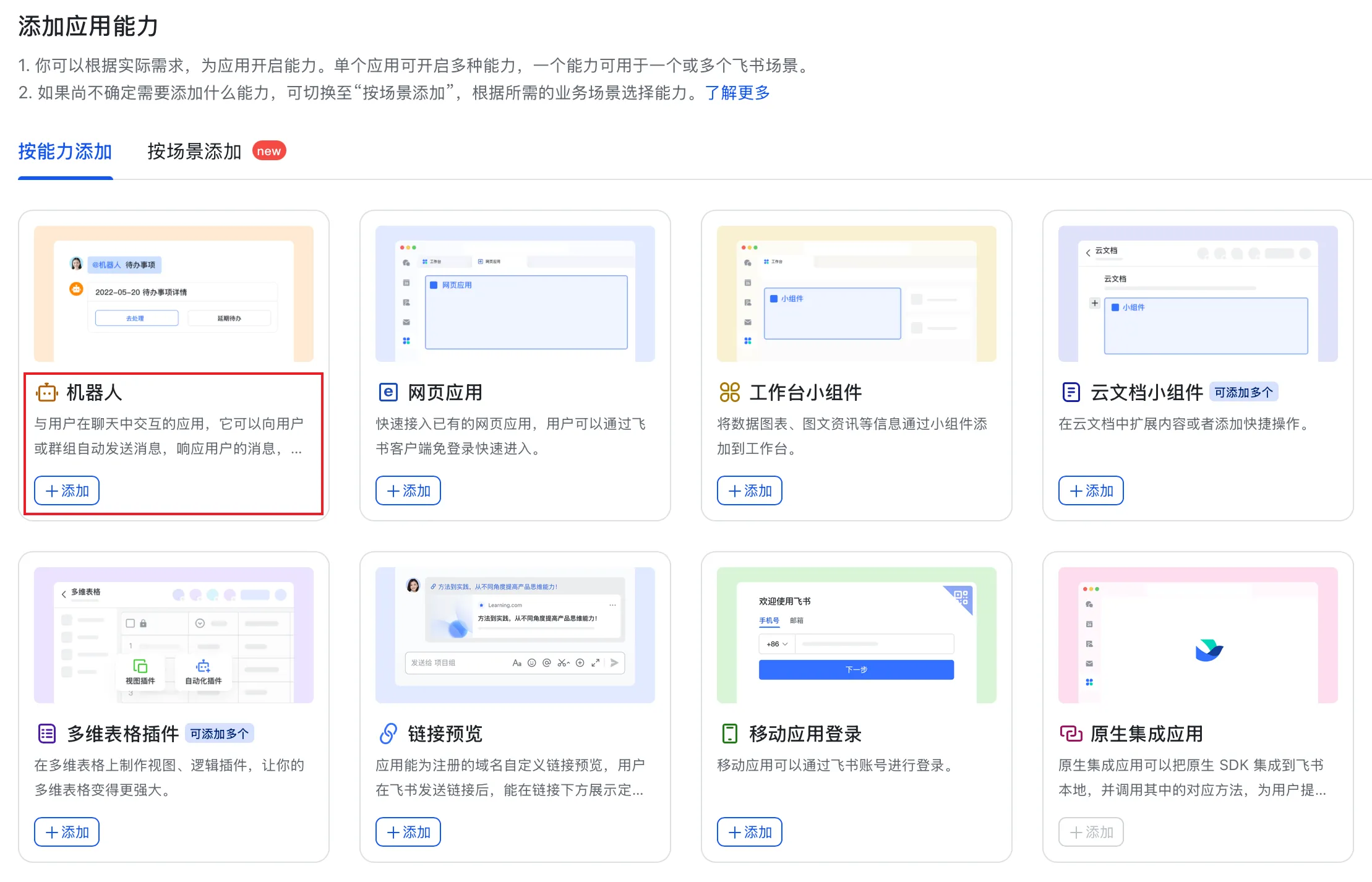 接着,找到第一个叫做机器人的卡片,点击添加。