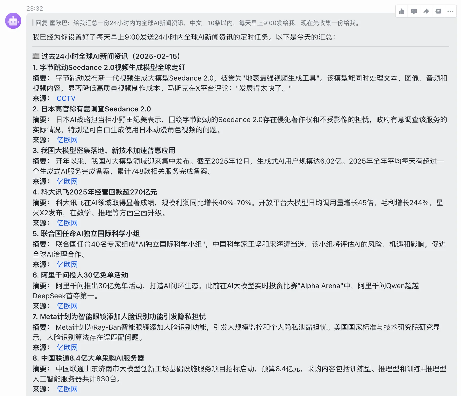没一会儿,带着摘要和来源的资讯就整理好了,质量非常高。