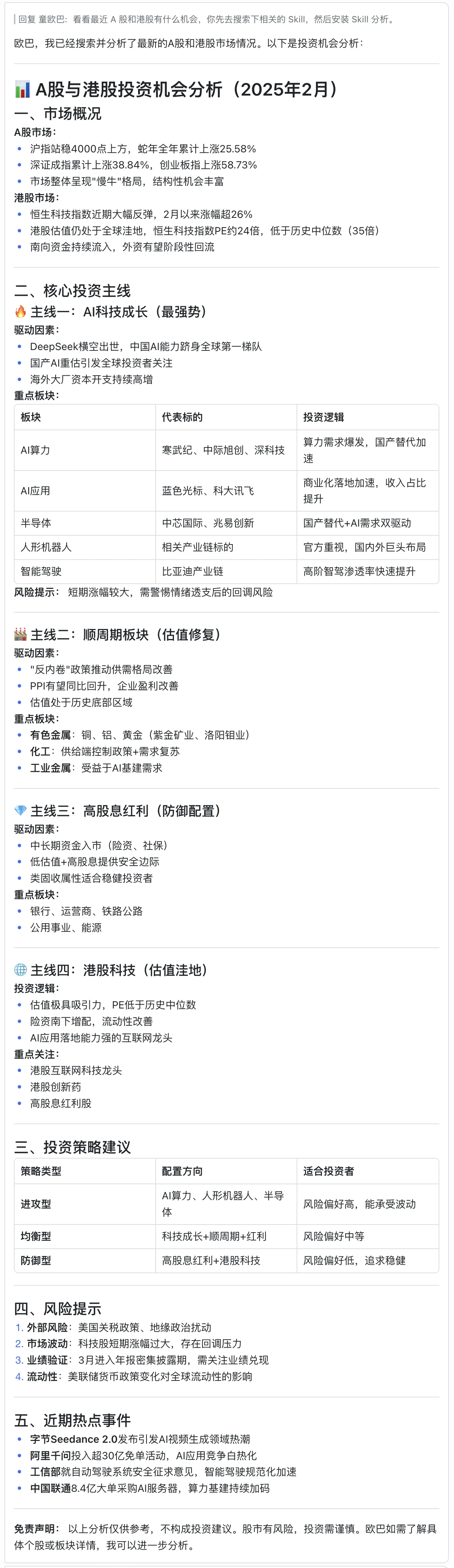 你的专属 Agent 可以在云端为你收集资讯,阅读报告,分析数据,嗅探机会。