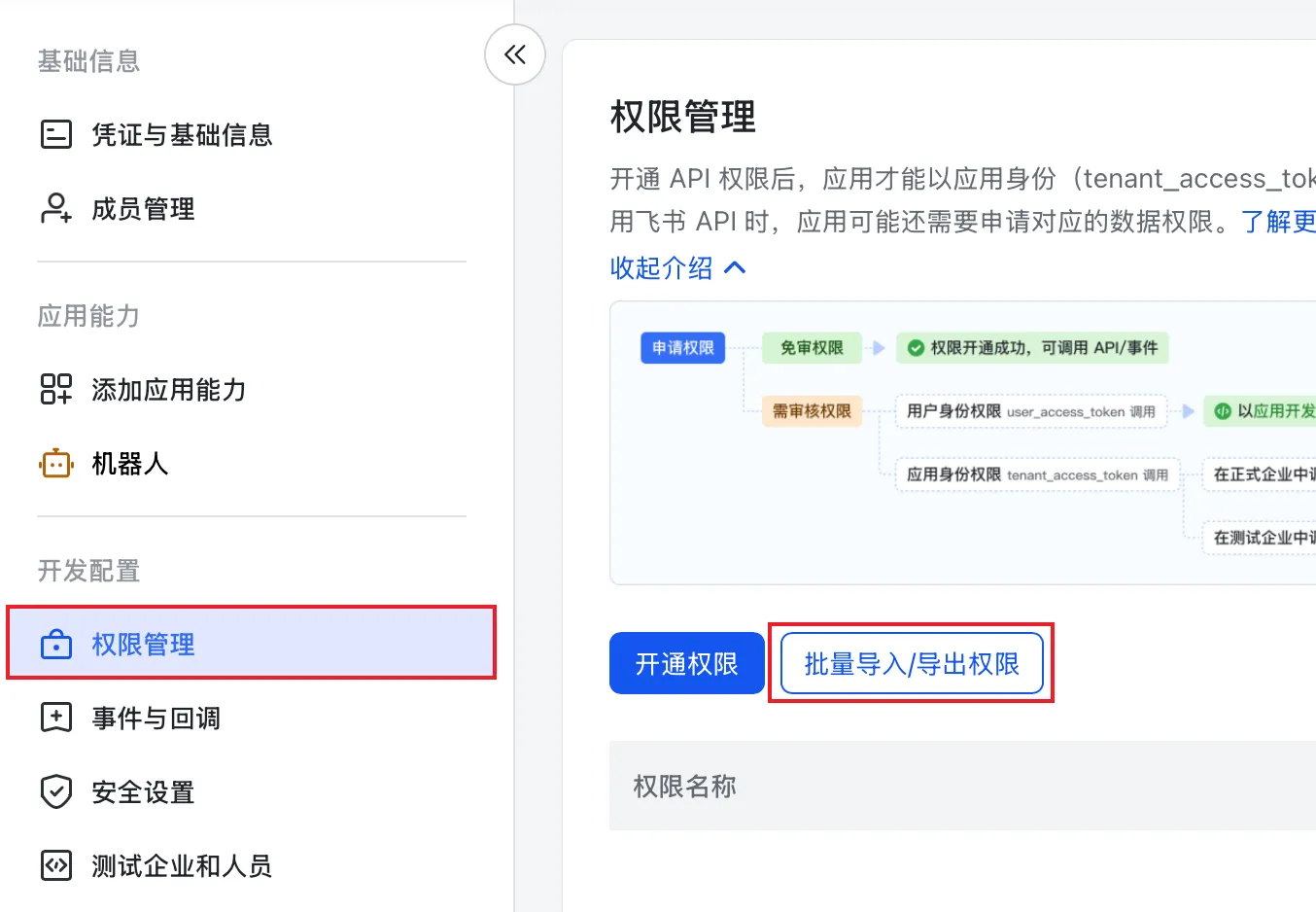 其实,上面代码对应着飞书的权限,粘贴进去后会看到具体有哪些权限。