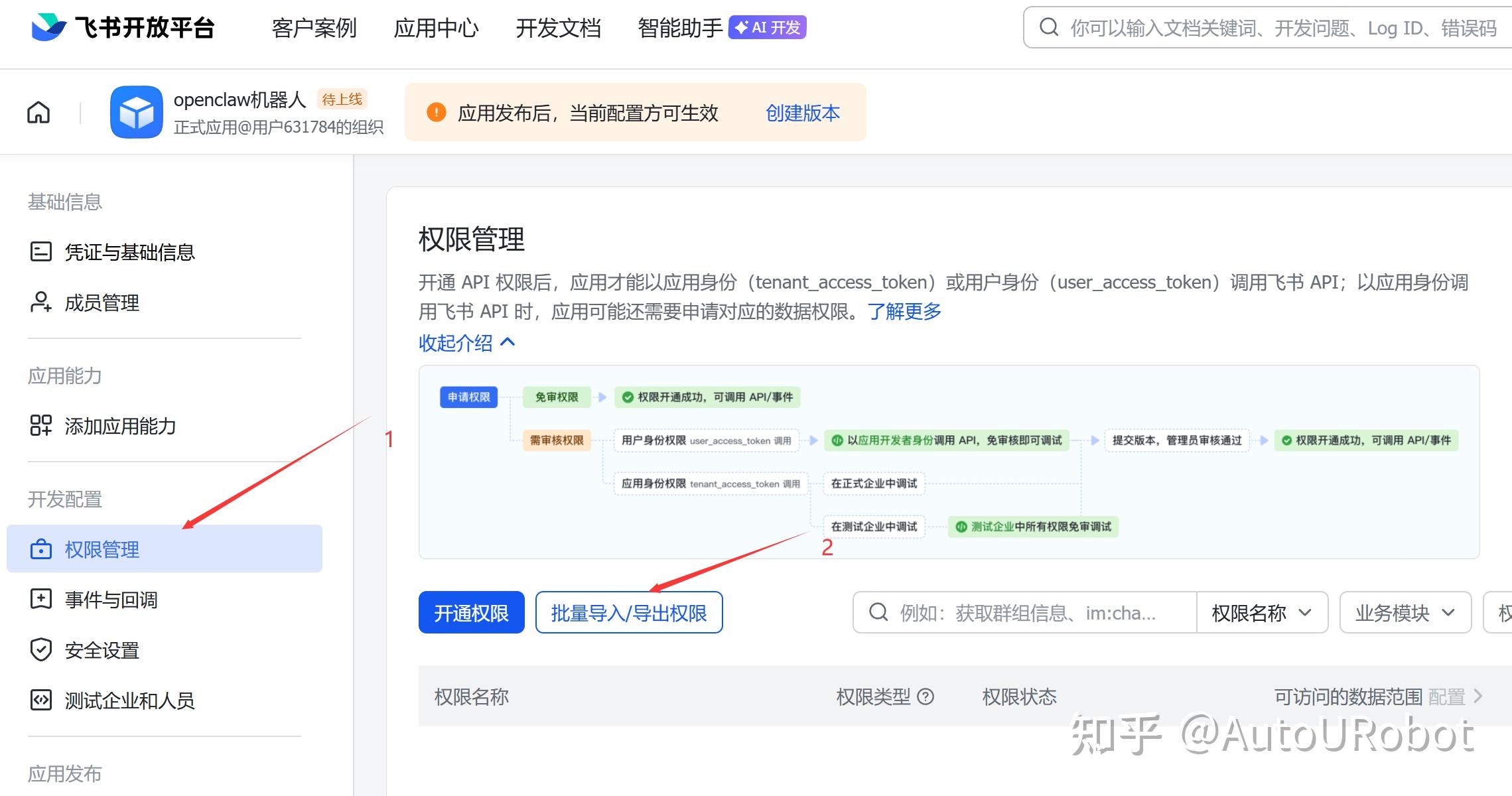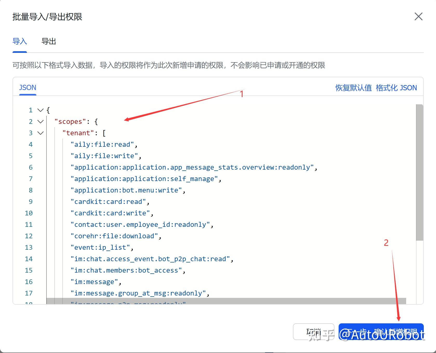 讯享网"tenant": [ "aily:file:read", "aily:file:write", "application:application.app_message_stats.overview:readonly", "application:application:self_manage", "application:bot.menu:write", "cardkit:card:read", "cardkit:card:write", "contact:user.employee_id:readonly", "corehr:file:download", "event:ip_list", "im:chat.access_event.bot_p2p_chat:read", "im:chat.members:bot_access", "im:message", "im:message.group_at_msg:readonly", "im:message.p2p_msg:readonly", "im:message:readonly", "im:message:send_as_bot", "im:resource" ], "user": ["aily:file:read", "aily:file:write", "im:chat.access_event.bot_p2p_chat:read"]